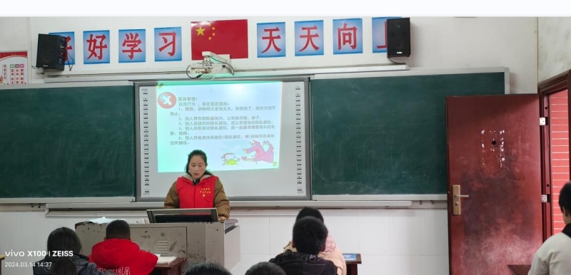 讲座现场,志愿者借助PPT课件,深入浅出地为学生们讲解了未成年人生理卫生防性侵教育、如何正确保护自己等知识。并要同学们学会保持良好的心态,保护好自己的身体,远离“性侵”,遇到问题及时主动寻求家长、老师、警察的帮助,避免生理和心理受到伤害。通过此次讲座,大家认识了自己身体,也提高了自我防护能力。