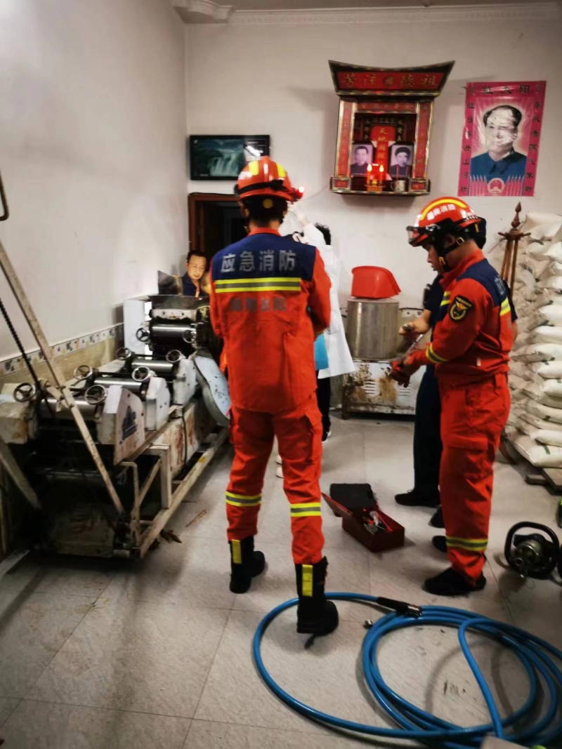南县茅草街中心卫生院急诊科负责人徐敏表示,救护车于19时20分抵达,到达现场后,大家都被眼前一幕所震惊。伤者是一名37岁男子,站在地上,右上肢被压面机器紧紧压住,神情十分痛苦,状态不佳,随时可能出现休克,情况远比预想的更加严重。随行救护人员立即给患者采取输液、升压等治疗措施。由于机器卡压,手臂无法脱困,救护人员第一时间联系茅草街消防,消防人员火速赶到,通过使用多种特殊工具操作后,经过近1小时的努力,厚重的钢材终于得以移开,伤者右手被成功解救出来。