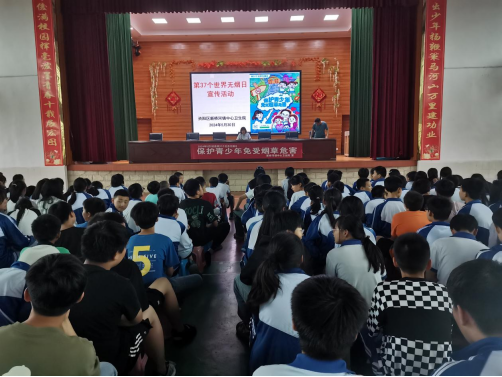 5月30日下午,医院健康宣教团队到益阳市第九中学开展校园控烟宣传活动,全校师生900多人参加。通过控烟知识讲座、发放健康教育宣传资料等形式引导同学们树立健康的生活理念。同时,号召同学们加入到控烟队伍中来——不仅要为自身健康拒吸第一支烟,而且还要劝说吸烟的亲友少抽烟、早日戒烟。