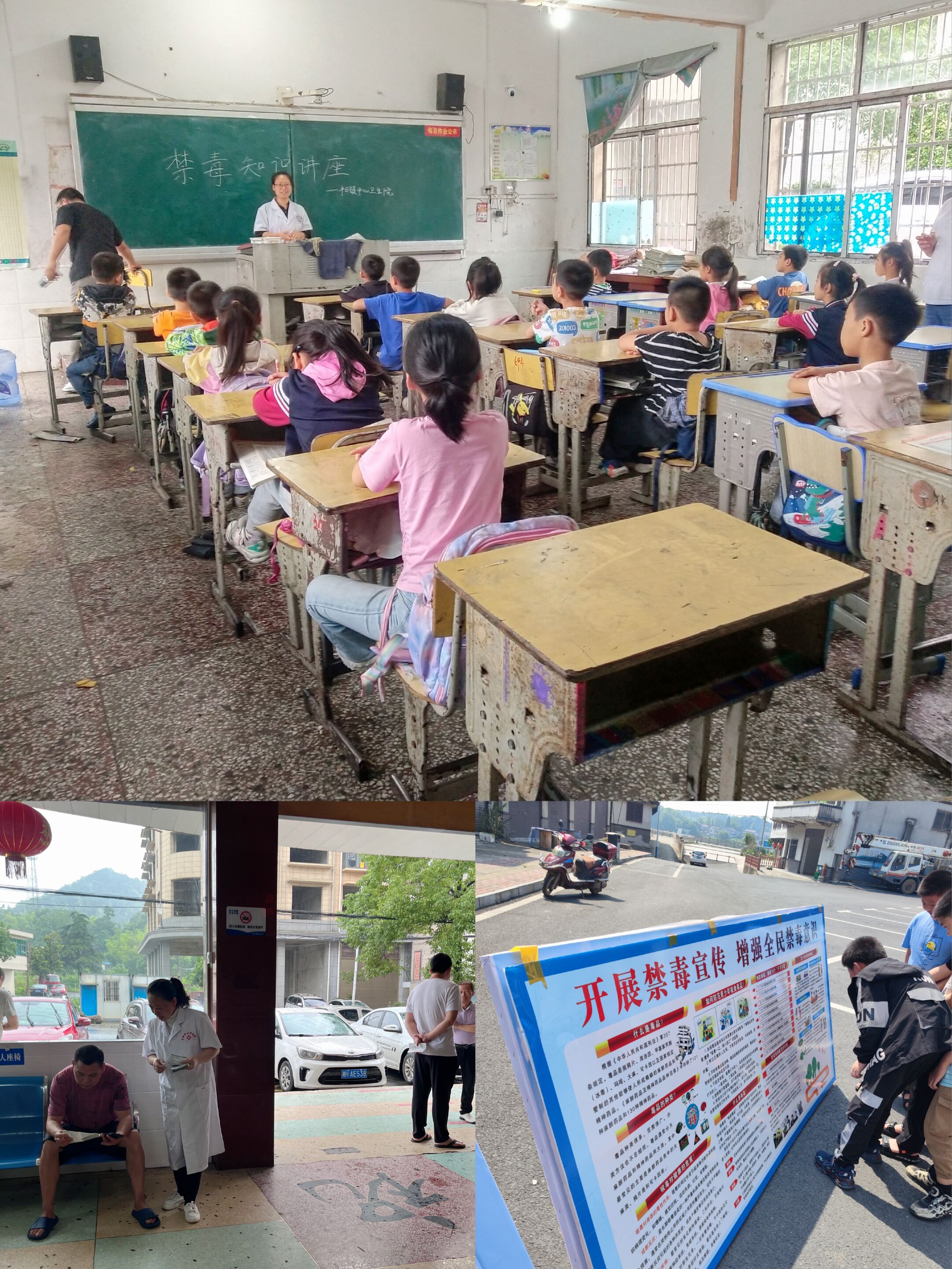 6月27日上午,桃江县牛田镇中心卫生院组织工作人员通过多种形式进行宣传。一是深入病房宣讲。对入院患者及家属发放禁毒宣传单,通过面对面的宣教,加强患者对禁毒知识的了解,让患者及家属充分认识到毒品的危害性及远离毒品的必要性。二是创新宣传形式。充分利用各种会议及活动,利用宣传栏展览和大厅LED显示屏,宣传禁毒知识,及滚动式播放禁毒标语,使禁毒知识渗透到每个家庭,让广大群众人人知毒、拒毒、防毒、禁毒。三是进校园开展禁毒宣传讲座。向学生普及传统毒品和新型禁毒知识,引导青少年树立正确的人生观和价值观。并通过讲述真实案例造成的严重后果,让同学们深刻认识到毒品对个人、家庭和社会的巨大危害,最后通过宣传展板,又进一步地加深了孩子们对毒品的认识。