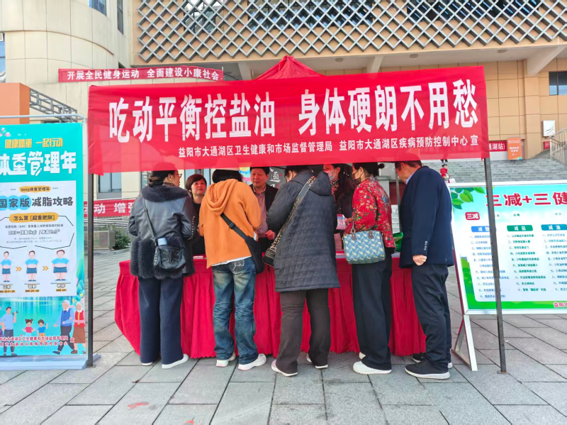 “阿姨,炒菜时少放一勺盐、半勺油,高血压风险能降不少!”“大叔,科学健身锻炼,心肺功能能年轻5岁!”12月6日,在大通湖区文体中心广场,“健康促进”主题宣传活动现场热闹非凡——减盐减油科普、科学健身指导、防艾知识宣讲三大板块联动,把“吃动平衡、健康免疫”的理念变成居民听得懂、学得会的“生活指南”。