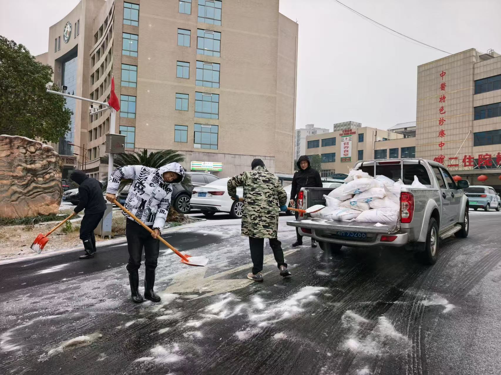 桃江县中医医院:风雪中撒盐除冰 畅通“生命通道”保障就医安全