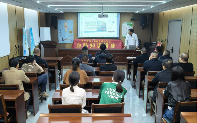 近日,沅江市南大血吸虫病防治站组织血防专家,走进湖南琼湖砂石集散中心有限公司,开展血防知识科普讲座,切实提升企业职工血防健康防护意识。